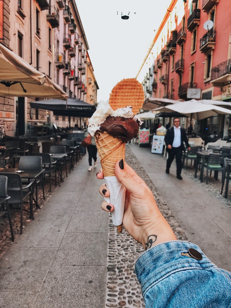 Then hop on the metro and check out the canals in Navigli. AND it’s the perfect time for an afternoon snack: GELATO!