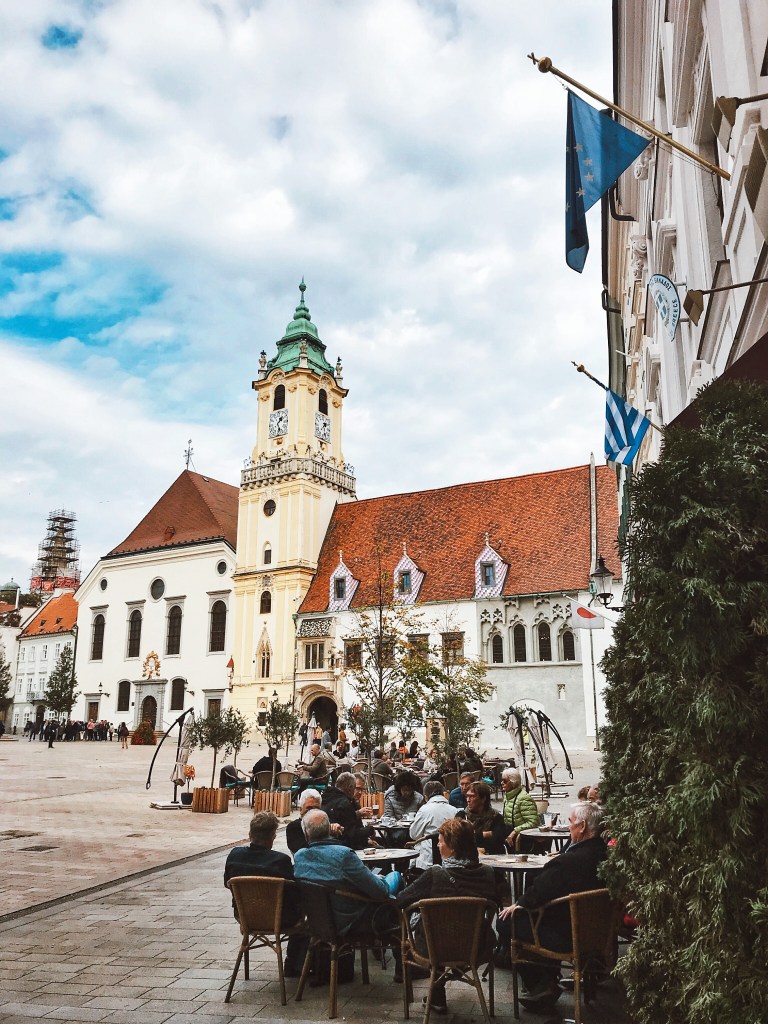I was pleasantly surprised with how beautiful Bratislava was. I really didn’t know what to expect going in, but it reminded me of a miniature Prague. We started out in Old Town Square (there’s the town hall + tower here), walked by St. Martin’s Cathedral, and headed up to the Bratislava Castle for views of the Danube River and the city below.