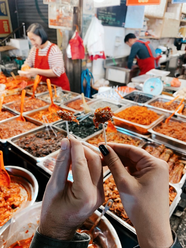 If you’re a foodie, you’ve got to check out at least one night market – and there are several. We went to Gwangjang Market, which is the oldest in the city, and ate so much – dumplings, crispy crabs eaten whole, potato pancakes (gamjajeon), and lots of rice wine.
