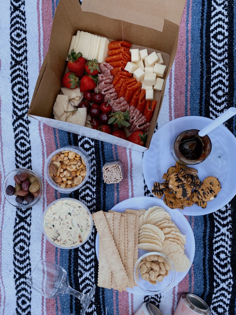 Now I pride myself on being a bit of a picnic master…and I’m known to throw together a pretty epic charcuterie board, but they can be a lot of work to bring to a picnic. I’ve seen a few companies out there that sell little “charcuterie boxes,” and I don’t know why I never thought of making one before; it’s the PERFECT idea for a picnic. Easy to pack, easy to clean up, and still very cute. Plus fun to make AND eat.