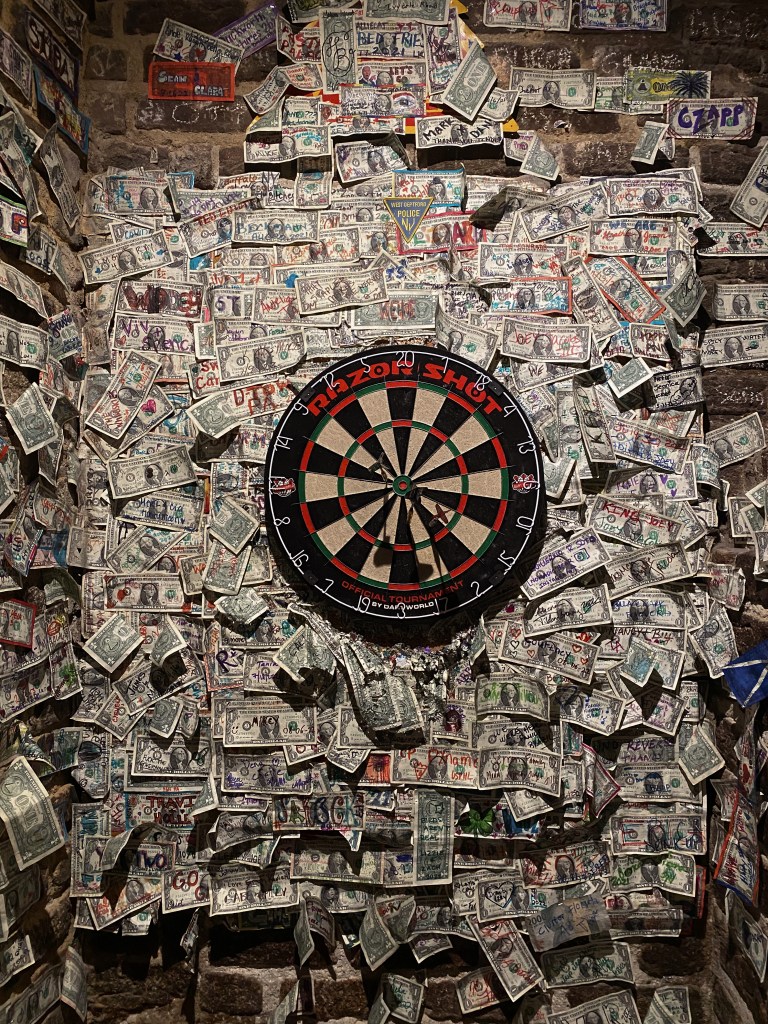 Eventually we made our way towards the water to watch the sunset. We had some time to kill so we stopped at the Griffon to grab a drink. The bar was highly recommended and had great reviews, so I don’t know if we were just there on an off night, but we weren’t impressed. It’s definitely got a cool vibe with dollar bills covering every wall, but the service just wasn’t great.