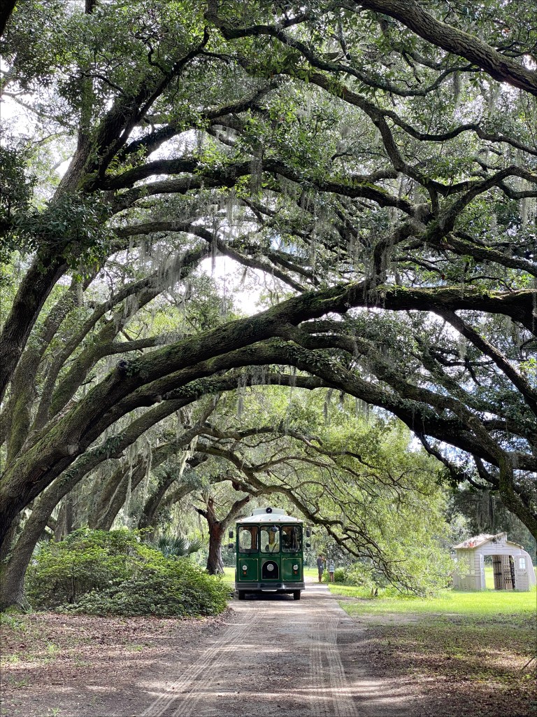 I did remember hearing about a nearby tea garden, so we decided to check that out, and it ended up being amazing. The Charleston Tea Garden is the ONLY tea garden in North America, and it’s FREE to visit (unless you opt for the trolley tour). There’s a free little factory tour, free tea samples, and an adorable gift shop. Zack, Alex, and I are all tea lovers, so this was honestly one of our favorite finds! Plus all the live oaks on the property were dripping in Spanish moss, and it was stunning.